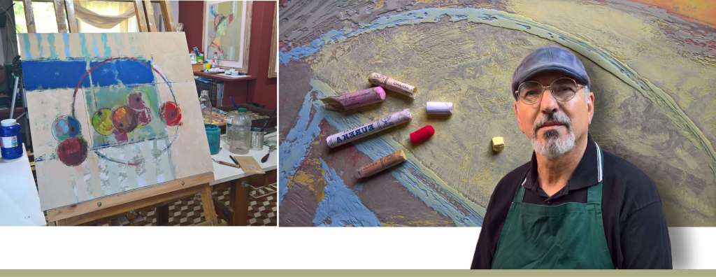 “Siempre fui un investigador de técnicas y procedimientos, logrando grandes aciertos en ello. Tengo obras de más de 40 años de pintadas, y se mantienen intactas. Una de mis preocupaciones es la permanencia física de la obra en buen estado. Hoy estoy experimentando con la aplicación de tiza pastel, sobre texturas con bases acrílicas muy espesas y fuertes, preparadas de manera artesanal y aplicadas con pinceles fabricados también por mí.”